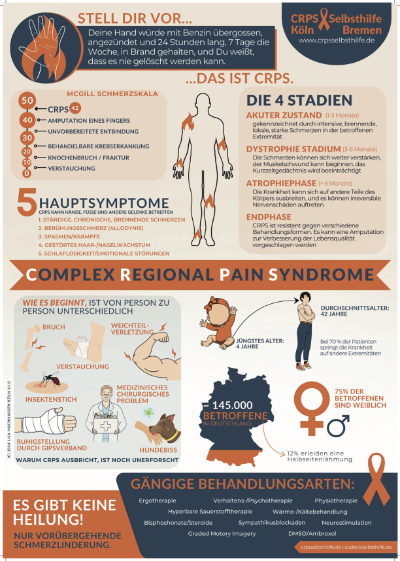 Die CRPS Selbsthilfe Köln | Bremen freut sich, die Einführung ihrer neuesten Kampagne zur Erhöhung der Aufmerksamkeit für das komplexe regionale Schmerzsyndrom (CRPS) bekannt zu geben. Diese Initiative zielt darauf ab, das Bewusstsein für diese häufig missverstandene und oft nicht diagnostizierte Erkrankung zu schärfen, sowie Betroffenen die dringend benötigte Unterstützung zu bieten.